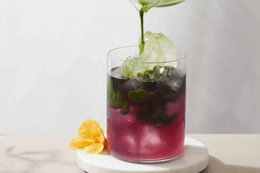 Uma bebida divertida e visual para impressionar seus convidados neste verão, nosso Matcha Blue Bloom Nº46 Gelado tem um toque floral e terroso, com notas cítricas. Observe o azul hipnotizante da flor da ervilha-borboleta mudar lentamente para roxo graças à acidez do limão, mas ainda mantendo seu sabor delicado. Com um toque do nosso Matcha AsaTea Cocktail Grade para adicionar um toque terroso, é uma bebida linda e vibrante para saborear durante os meses de verão. Continue lendo para ver como prepará-la…