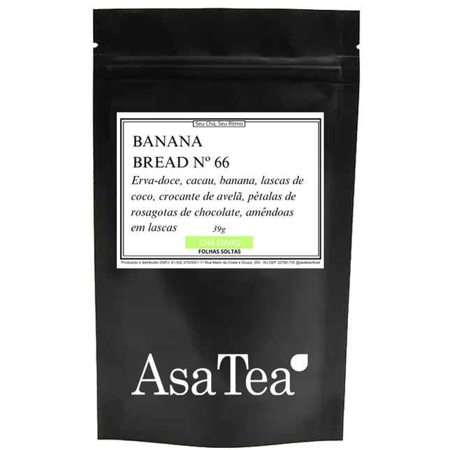 Banana Bread No. 66 é uma bebida aconchegante perfeita para noites frias ou um petisco suave à tarde. Combine com uma fatia de bolo de chocolate com amêndoas, biscoitos de avelã ou rolinhos de canela. O chá também é um acompanhamento delicioso para sobremesas com caramelo ou frutas como peras e maçãs.