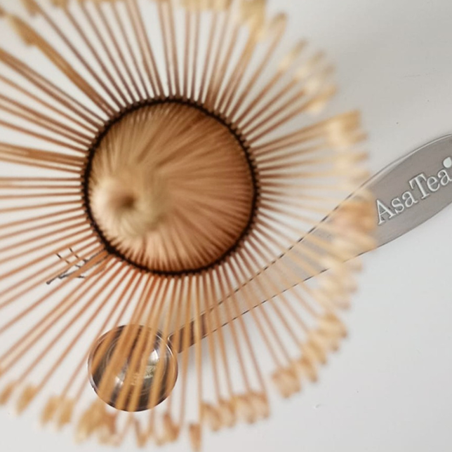 Este original batedor de matcha de bambu, feito à mão, com 100 pontas (também conhecido como Chasen), é a chave para o preparo tradicional do Matcha cremoso e espumoso, reverenciado há séculos nas cerimônias do chá japonesas. O Chasen é habilmente esculpido em uma única peça de bambu, curada por até dois anos. Suas pontas delicadas transformam o Matcha em uma espuma especialmente fina e uniforme.