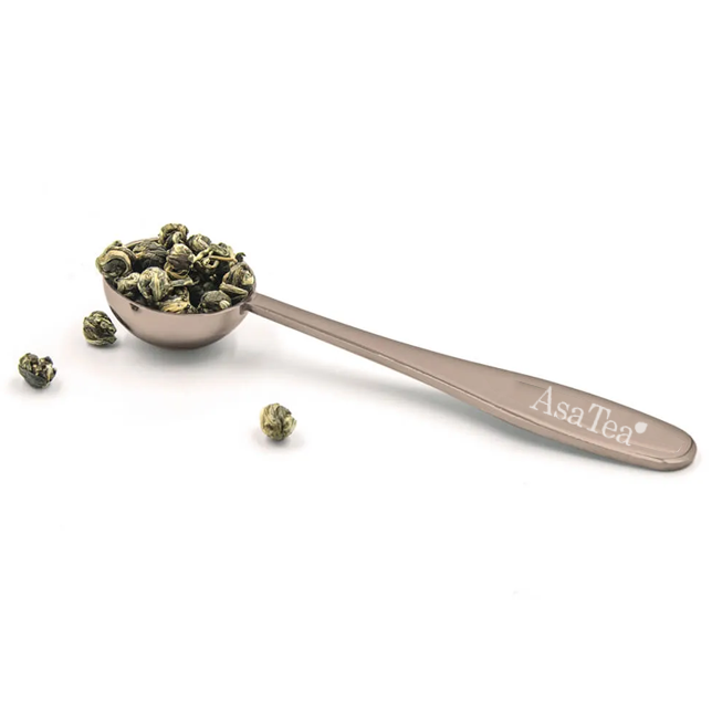 Esta refinada colher medidora de chá, feita de aço inoxidável durável, combina elegância e precisão em um design atemporal. Com capacidade para 15 ml, ela garante que você meça a quantidade perfeita para o seu chá sempre que precisar. Uma colher contém 15 gramas, sendo ideal para uma xícara do seu chá favorito. Para folhas maiores, como chá branco, recomendamos preencher bem a colher para liberar todo o sabor.