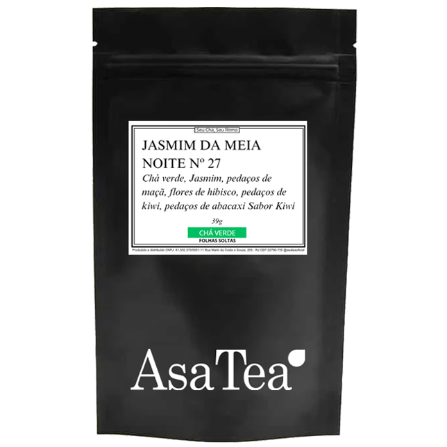 Chá verde, Jasmim, pedaços de maçã, flores de hibisco, pedaços de kiwi, pedaços de abacaxi Sabor Kiwi