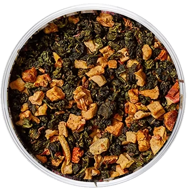 Chá oolong da camelia sinensis, maçã, cubos de maçã e pêssego